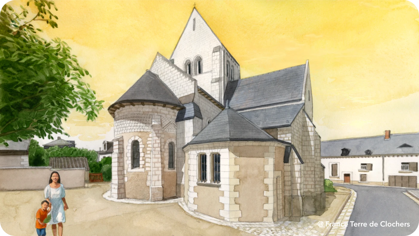 Son architecture homogène présente une longue nef, une grande abside et des chapelles orientées. Construite en calcaire et tuffeau, elle offre une silhouette sobre, tandis que l’intérieur, baigné d’une lumière douce, évoque une atmosphère presque monastique. Inscrite aux Monuments historiques depuis 1926, elle fait l’objet en 2026 d’une restauration de charpente et façade.