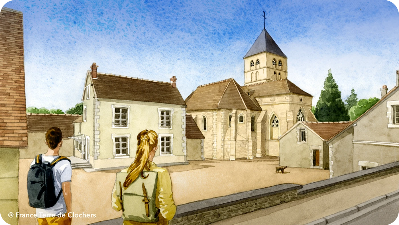 Au cœur du pays d’Auxerre, le village d’Escamps abrite l’église Saint-Georges dont l’histoire prend ses racines au VIIIᵉ siècle. L’édifice est une belle construction en pierre dont la silhouette est dominée par une imposante tour clocher à plan carré. Massive et puissante, cette tour médiévale est typique des clochers bourguignons des XIIIᵉ et XIVᵉ siècles. L’église actuelle date principalement de cette période et présente une architecture gothique avec sa nef, ses bas-côtés, son transept, son chœur et son clocher, formant un ensemble harmonieux et représentatif du style régional.